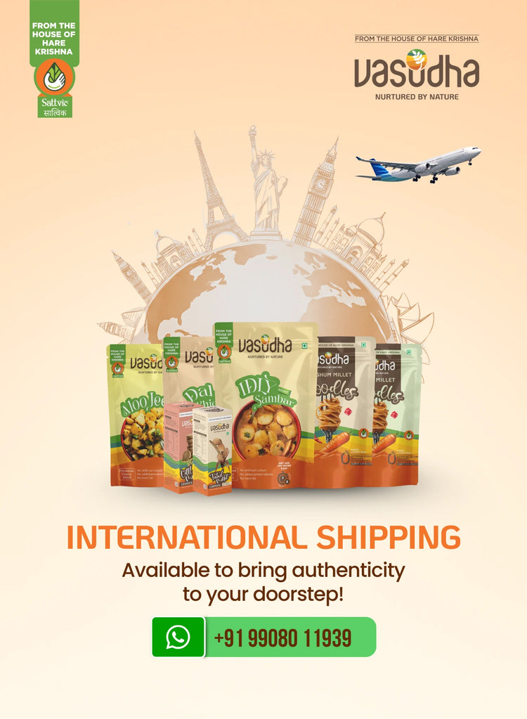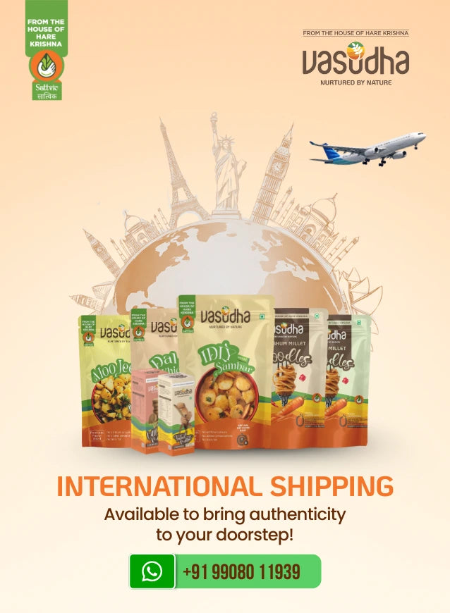 Experience Vasudha's pure, traditional, and healthy foods, sourced directly from rural farmers and processed at certified centers for unmatched quality. Embrace Sattvic cuisine by the House of Hare Krishna, offering purity, balance, and holistic well-being in every bite.